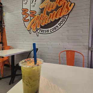 This wasn't my first visit to a Two Hands, but this was my first time visiting this location in San Tan Valley. I wasn't really hangered, but I decided on a combo to share, along with the Custard Boba drink I'd heard good things about.Wellll... I wasn't all that impressed, to be honest. The boba drink wasn't the greatest, and the color threw me off. It just looked and tasted really artificial. =( The boba was a good texture, though. The food was very mediocre. It was "made fresh" as I waited, but the tots tasted like they were just reheated and topped with whatever toppings they had. The dog wasn't that great either. I'm getting depressed as I write this, so I'll just stop here.This place looks like it's been around for a while, and it could use some updates. Service was okay, and prices are average, but I don't think I'll be back anytime soon.