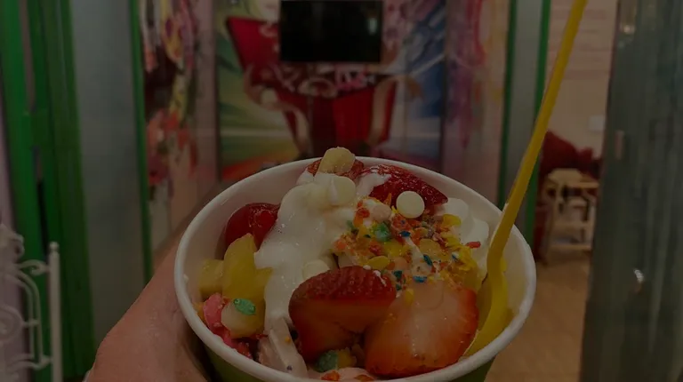 Frozen yogurt with toppings.