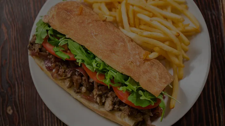 BRAISED SHORT RIB, RED ONIONS, ARUGULA, TOMATOES & AIOLI