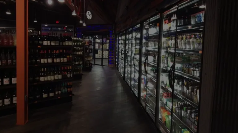 shelves of liquor in a store