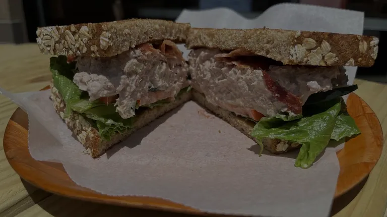 I was getting my car worked on nearby and walked here I was very impressed by the selection and the service I decided to get the tuna on wheat and added bacon a plus they have a nice outdoor seating area