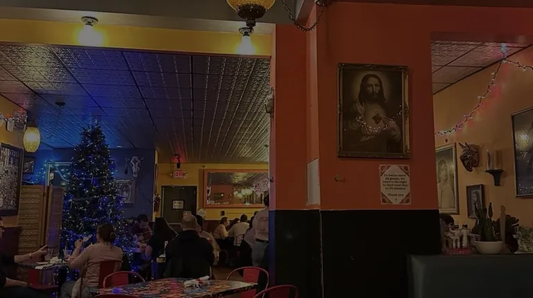 Cafe Corazon serves up flavorful Mexican eats in a quirky environment.Came here recently for dinner and had a great experience.First of all--love that they have salmon dishes on the menu. If you follow my Yelp at all, you know this girl pretty much orders salmon if a place serves salmon (living in the Northwest for many years made a salmon lover out of me). I ordered the salmon burrito. It was incredibly flavorful, with avocado, rice, and juicy salmon. Zero complaints--it was great!The service was attentive and the prices are reasonable.We were fascinated by all the religious art on the walls.Get to it!