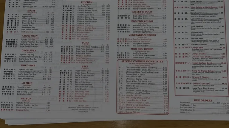 The food is yummy. Been going to this restaurant for several years. My favorite is the homestyle bean curd that comes with white rice. We always get veggie egg rolls. The service is fast. Usually takes them 10-15mins to complete the order. The restaurant could be in a better well lit area. Inside the restaurant is maybe two small tables, I assume most people just order take out. When you place your order in person at the window, they give you a menu for you to circle off, to minimize any mistakes.