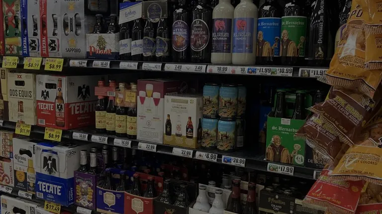 a variety of beers on shelves