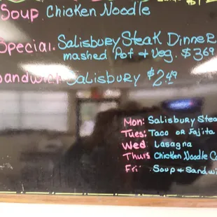 a menu on a blackboard