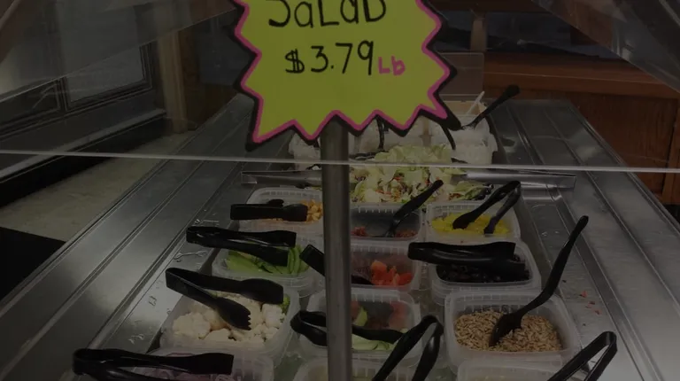 a display case with salads in it