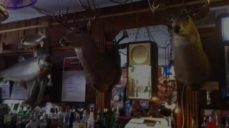 two deer heads mounted on a wall