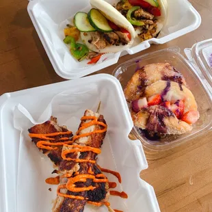 Dia bom is a new vendor at the Crossroads Collective and WOW is it delishh! I go thr pork belly and chorizo bao. The pork belly is surprisingly filing, it looks like a few pieces but each on is packed with a flavor punch. The pork meat and fat melt together to create a very tasty concoction.The chorizo bao is flavorful and the pickled onions sealed the deal for me. Get you some Kushiyaki next time you're at the Collective, I'm surely going back for the sweet bao.