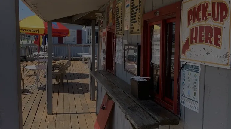 Rustic - esq hot dog/hamburger/bratwurst stand located on the Waukegan harbor. Within walking distance of the boat launch, large pier (w/ lighthouse) and marina. The hot dogs are about $3 each and you get to add all of the fixings to it yourself. There is only outdoor seating. Great for food and/or a refreshment on a hot, sunny day.