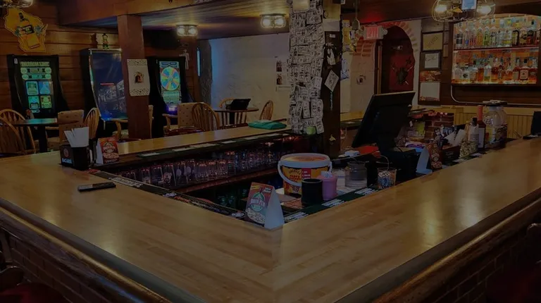 I stopped here and I did a U turn to go back to check them out because I'm not in the area that often and I felt like I would be missing something. The place very old looking on the inside with a small bar and gambling machines. The bartender was nice and talkative with the customers all 3 of us. The front sign is a leftover of a time past and they don't have food but they have frozen Brew Pub pizza. The walls and fixtures look old and I was told that it's been a Bar since 1901. They have a cool back lit bar on the wall and a super old looking door with a crest on it. The two regulars were friendly and talked to me. They also have a small patio by the front door for nice days.