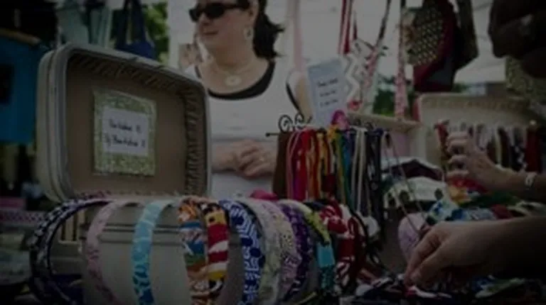 a woman shaking hands with a vendor