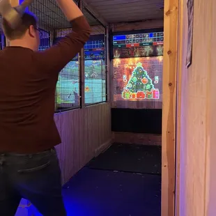 We redeemed some Christmas gifts for axe throwing on a Saturday. After getting set up, and running through some of the basics, we were set to go. They ran through the game options, and the one with an option to get a free beer. The staff would watch every so often to help you correct your throws and offer assistance when needed. They also made sure to check-in if we needed any food or drinks. We enjoyed the variety of games for whatever you might be in the mood for.
