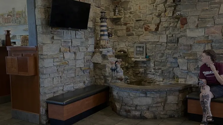 I stopped here while I was in town to get some breakfast and start my day and at 6:50 am and the place was mostly empty. The building has a faux light house, nice outdoor covered bar area and a cool stone fish pond. The place itself looks like a dated Greek restaurant with booths and tables.I asked my server if the biscuits and gravy was good and she said very good so I got the 1/2 order with two eggs because I didn't want a full breakfast. The biscuits and gravy looked ok but it had minimal tiny pieces of sausage for the most part. My sunny side up eggs were perfect. I thought that the biscuits and gravy were average and nothing to wow you over. Overall it's an ok restaurant for breakfast but I have had better.
