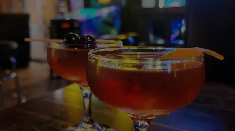 two cocktails on a table at a bar