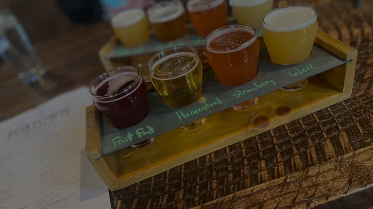 Brick oven amber ale, hidden well IPA, strawberry-pineapple seltzer, raspberry wheat ale