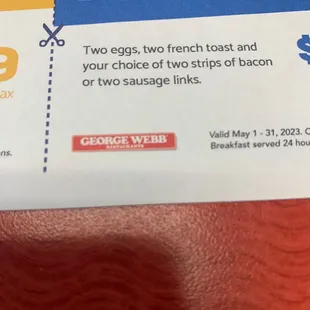 I ordered 2 meals - & I was so disappointed by the quality & messed up order. Hash browns with cheese shouldn't be that difficult. Hash browns came with black burned & no cheese. Cheeseburger was not edible. Again dried out, overcooked & hard to try to chew. Favor- none. In 5 minutes I put it in the garbage. Big waste of money --.Suggest a different place. It's not the " good old". George Webb's, Went way downhill.