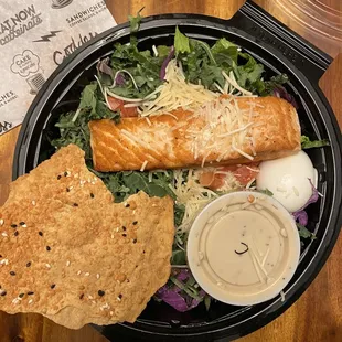 The salad was fresh, I just wish it had come with a bit more salmon and less salad.The service was attentive, and personable. It has improved from other times.The atmosphere was great, it's lovely when it's not packed with customers.