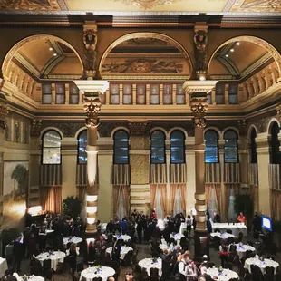 The Grain Exchange Room is a stunning event space in downtown Milwaukee located in the historical Mackie Building.With ceiling stretching at least three stories high and tons of gorgeous architectural touches, this space would make a stunning backdrop to any event. The space is big enough for 500 guests at a cocktail style event or 350 seated. They're associated with the Bartolotta Restaurant group, who offer catering for events. A truly elegant space for large events.