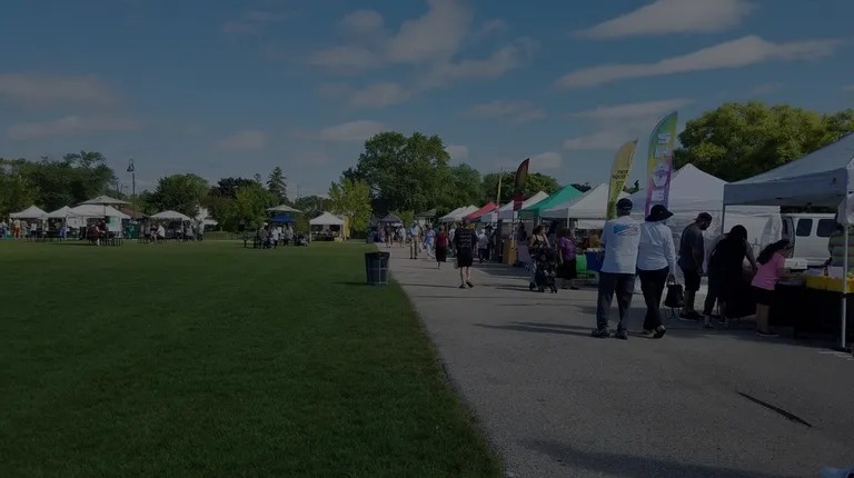 It's located in a great park. There is a lot of parking. There are many options here. If you need fruits or vegetables there are plenty of farmer stands. If you want Mexican corn or other ready to eat food there are plenty of options. This is a nice stop on Sundays.