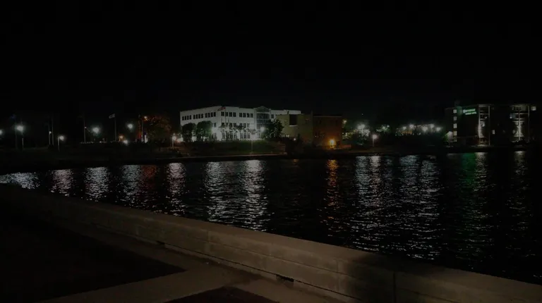 the front of the restaurant at night