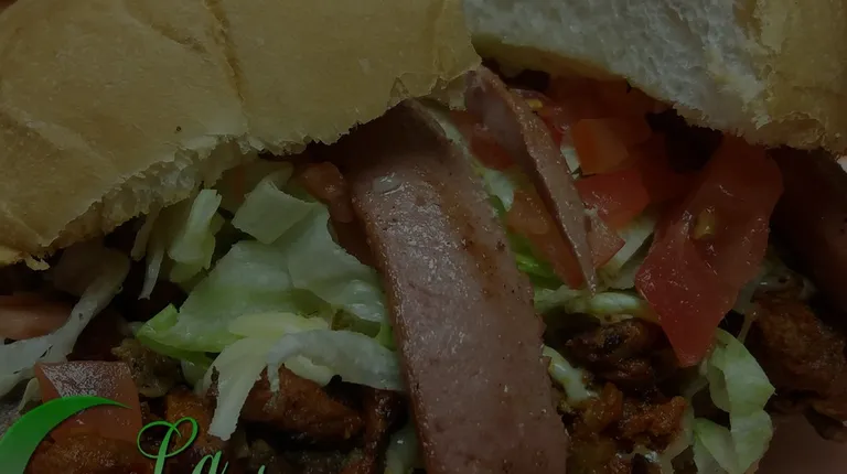 a close up of a sandwich with lettuce and tomatoes