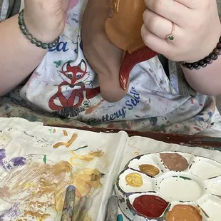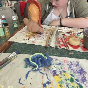 Unfortunately the person who was working at the time was rude and snappy. I did not feel comfortable and I wanted to leave halfway through my pottery. There was no creative freedom and this person micromanaged everything my group did. Asking any questions or making suggestions was difficult because the person working would not let you get a word in. This is definitely not the attitude you should have in a business especially one that targets kids and art. After they had left and other workers came in the vibe shifted into a positive light. We really want to come back here because it has the potential to be enjoyable. I understand this business tries to provide methods to teach people how to paint their pieces nicely, but it shouldn't be mandatory to only do it one way. Art is expressive. The prices are wonderful, the paint is good quality, The customer service needs work.