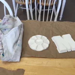 We were told to pick out our pottery pieces and sit anywhere. I noticed the people sitting around us and even people coming in after us were offered smocks while no one asked us. Someone came over and told us the process and had us fill out a ticket with what color paints we wanted and what type of pottery we picked out. You then have to wait for staff to bring the supplies out to you and then also have to wait and ask around if you want a different color or clean paintbrush. Came back today as we were told that we can pick it up on Tuesday. The guy running the pickup area said that he can't find our work and that we weren't specific enough on the order ticket, and that we should've painted our initials somewhere on the bottom which no one told us to do this before. I'm confused because what was the point of filling out the ticket if it's not going to be kept with the pottery pieces? There were so many finished pieces with no indication of who they belong to because the order ticket doesn't go with the piece. No refund was offered, nor did they offer to ship our pottery to us once theh found it. Too disorganized for the prices they charge. Especially coming from out of town we now have to travel back here next week in hopes that they somehow find it. If you want a smooth experience I recommend Just Kilin Time in Menomonee Falls. As it's a newer modern building, more spacious, cheaper, allows you to pick out your own paint and supplies, and picking up after is never a problem because they keep order tickets with the pottery pieces.