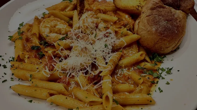 Lobster Ravioli with Grilled Shrimp in Vodka Sauce. Garlic Toast. Sooo Delicious