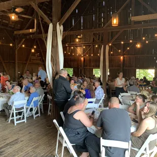 Today We enjoyed a wonderful wedding of a dear family member. Festivities started at 330-400 and went all night long. They have a large barn setting for bar and appetizer service, then roll into dinner. Our meal was pasta, chicken, meatballs, greens for salad, mini bread slices, desserts (we had Italian cookies). Note: The Barn does not have air conditioning. It was 96 degrees today, they opened the barn doors to let the breeze naturally cool the guests. I saw 100+ people and the barn handled it well. They have parking for 50-60 cars. Bathrooms are in the barn's lower level, they can handle 3-4 people at a time. I recommend and will return.