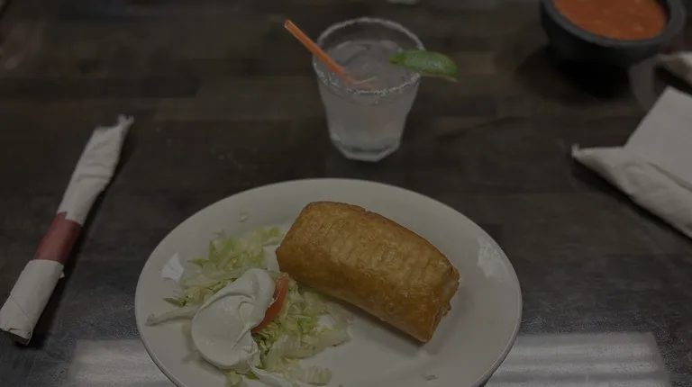 Breakfast burrito with chorizo, egg, cheese and cilantro. Bloody Mary with tequila
