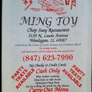 Ming Toy has been a staple in the area for over 40 years! Thank goodness my husband introduced Ming Toy and I 14 years ago. It has been a delicious relationship since! Their food is some of the best Asian food around. We drive in from Wisconsin as the food is unparalleled! We had the shrimp egg foo young and the pepper steak and tomatoes. Consistently delicious! Bring cash, no cards accepted.