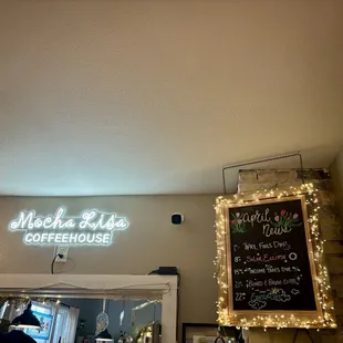 a menu on the wall