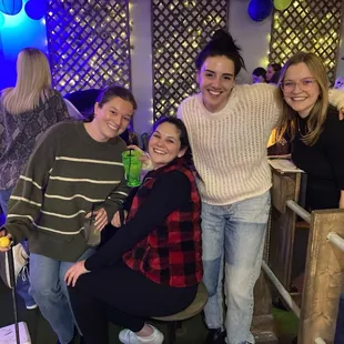 such a fun activity to do while enjoying some adult beverages!! you make your own mini golf course with all sorts of props, and then spend your 2hr session circling around playing everyone else's. they also have a nintendo 64 with mario kart on it which is my childhood in a nutshell & so fun to play while waiting to get started. drinks are fairly priced -- they have a very good French mule with champagne in it for $6, and you can get a light beer for $3 which I think is reasonable. don't come hungry through because while I believe they have a snack or two on the menu, they really aren't serving food. you need a reservation so make sure to book ahead of time.