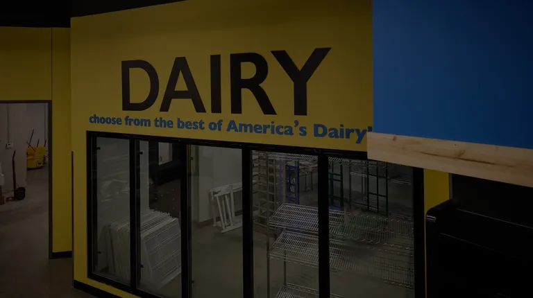 Jeffrey, our General Manager, and Kianna, our Marketing Assistant, are standing in front of the future home of our local meat area.