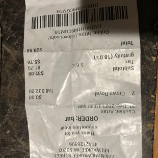 a menu for a cocktail