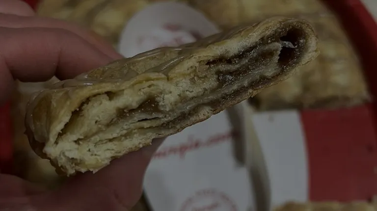 Cheesecake Kringle: A Kringle is a large circular Danish pastry with flaky dough, covered in icing, & filled with fruit, nut, or other more unique flavors. After doing a little research I've learned that sadly, Kringles are not widely spread throughout the U.S. It turns out that Racine, WI is actually the epicenter for Kringles. Racine Danish Kringles is a third-generation family bakery and they utilize the same recipe Danish bakers brought to WI in the late 1800s. Fun fact, Kringle is the official state pastry of Wisconsin. Even though I'm a Wisconsinite, I don't indulge in Kringles too often. The reason for that is although Kringles frequent work breakrooms and all manner of parties, they're usually a fruity variety (yuck! my loyal followers know I'm not a big fan of fruit in desserts). When I do go for a Kringle, I prefer varieties stuffed with caramel, chocolate, ect.... This brings us to the Ingenius variety I have today, cheesecake! Unlike the disappointing/gross fruity flavors I tend to spot at gatherings, this one is filled with a delicious cream cheese and graham filling. I didn't detect much of a graham flavor, but that was fine because the sweet cream cheese filling more than made up for it. This is one of the best tasting Kringles I've had in recent years. Doughboy approved Doughboy_Food_Reviews