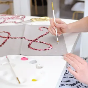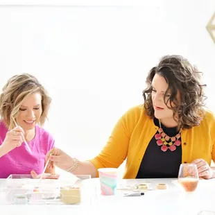 This was my first time here and I had nothing but a good time! The staff was friendly, the ambiance makes you want to stay all day and the fact that they have food and drinks makes that very much a reality. My friend and I made Gilded Agate coasters. This craft could have been fine in 30mins but we slowed it down and took a little over an hour to connect and talk while creating the coasters. It's a great spot for date night, Bachelorette parties, or catching up with friends. The space can be loud or quiet and the music is eclectic to match all ear interests. The fact that you can drop in is great! Which allows for spur of the moment ideas or planned nights. Excited to come back and make another craft!!