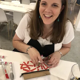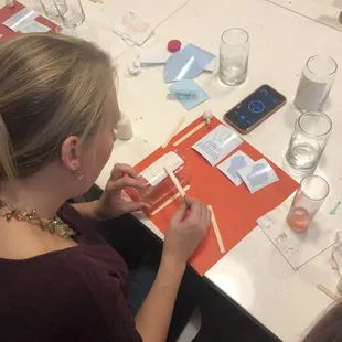 We made a reservation a couple days ahead of time and went in a group of 6 friends to craft. I'd never heard of or been here before! I was pleasantly surprised what a low key, evening relaxing environment it was. I'm a mom of a toddler and on Friday night I wasn't crazy about going to a noisy bar, which luckily this wasn't! -Order a drink and/or snack -Look through the menu in person or online and choose which craft you'd like to do (prices are listed)-They bring you a tray of your supplies with instructions -Craft and sip!-Conveniently pay at the register on your way out, separate checks:) *Parking with a map listed on their website. Two (cheap!!:)) garages within short walking distance. This place is great to craft, get a drink, a snack, chat with the girls and have fun. A clean bathroom, too;) It was a unique experience and I'm glad I went!