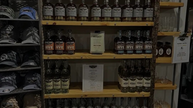 a sign for rush creek distilling