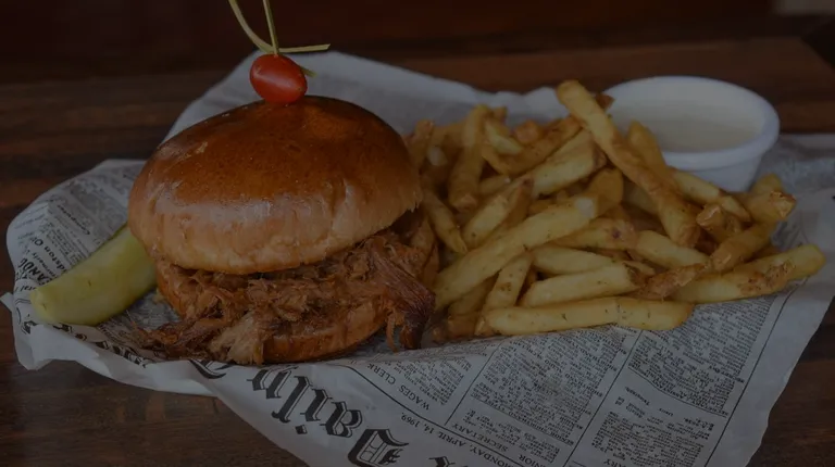Saz's Jalapeno Pulled Pork Poppers-jalapenos stuffed with BBQ pulled pork and Wisconsin cheddar, bacon-wrapped and deep fried