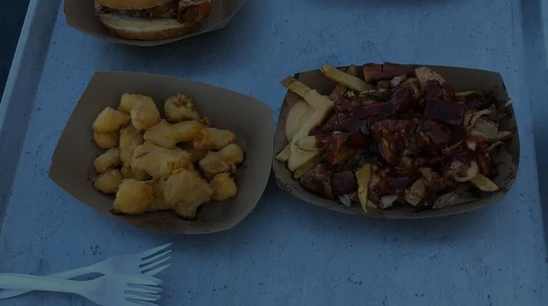 Hi, This is Dominic the food reviewer. On Friday night I tried Slo' Motion BBQ Food Trailer & Catering It is a BBQ food truck. They also do catering and parties. Every Thursday it's parked at Soiree Wine Bar which is located at S73W16582 W. Janesville Rd, Muskego for dinner.I got the pleasure to meet the owner Adam and his nephew Nick who helps out on the truck. Adam said he opened Slo Motion in 2019 starting with just pop ups, and added the truck in June, 2020. Adam was a corrections officer with the state of Wisconsin and he decided to leave that in September, 2019 to follow his passion. Adam said God is at the center of everything for them, and he has eight kids, and his wife is a nurse, so he's always busy.All the food they make at the truck is made from scratch including the chips, hand cut fries, sauces and rubs. He has three BBQ sauces that he makes that are called the crabby apple, I94 and the Dairyland Inferno. I tried the crabby apple flavored sauce which was a sweeter type of sauce. That sauce I would definitely highly recommend trying if you love bbq. I also tried Dairyland inferno and it had some good kick to it, but I love spicy foods so it was good for me.For dinner I had a BBQ feast. I had a bunch of varieties of different kinds of BBQ to try. First I tried some beef brisket, which was so tender and delicious. Then a BBQ sundae which had mac & cheese choice of meat and choice of sauce, then I had cheese curds, and creamy coleslaw. I also tried some of my dads loaded fries, which are hand cut fries, queso, choice of meat and choice of sauce. I thought the bbq sundae was mixed well with the cheesy mac & cheese in it with the tender meat, and the sauce also. My mom tried the bbq chicken sandwich and she enjoyed it very much she said. I also got to sample some of their homemade chips. I thought their homemade chips were nice and crispy and freshly warm. To finish I tried the coleslaw. All the food was so great, and I loved my bbq feast here. I would definitely try all this food again. Those curds were so awesome too.I would definitely go back here because the owner Adam was very welcoming and friendly, and all the food was home made and tasty.