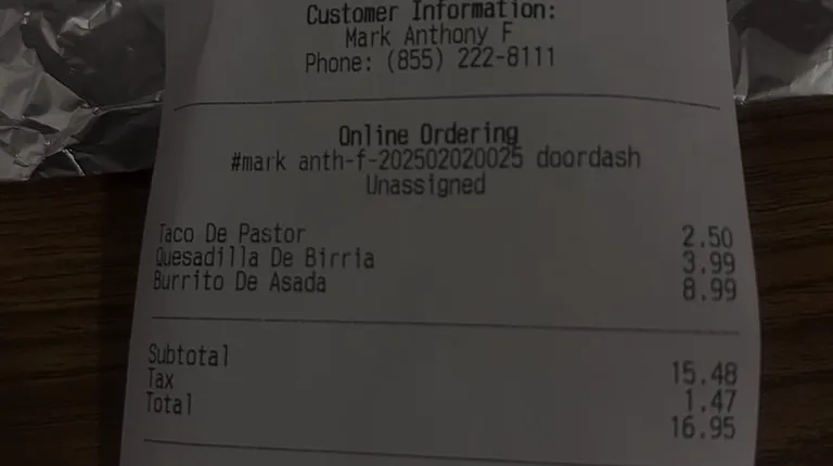$13.991 tostado and 1 gordita.