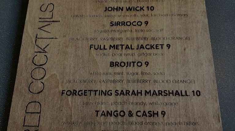 Drink and food menu