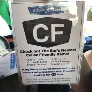 WOW- let me just say I am so happy there is a bar in existance that actually makes celiac-friendly fried food! I have never once in my life been able to have fried food without getting sick until THE BAR!!Staff is always nothing short of friendly and sweet- and the gluten free cheese curds and onion rings, and mozz sticks are out of this world!! They are also very accomadating with their drink selection and special drinks requests. I really hope they never get rid of their gluten friendly appetizers and fryer!!:)