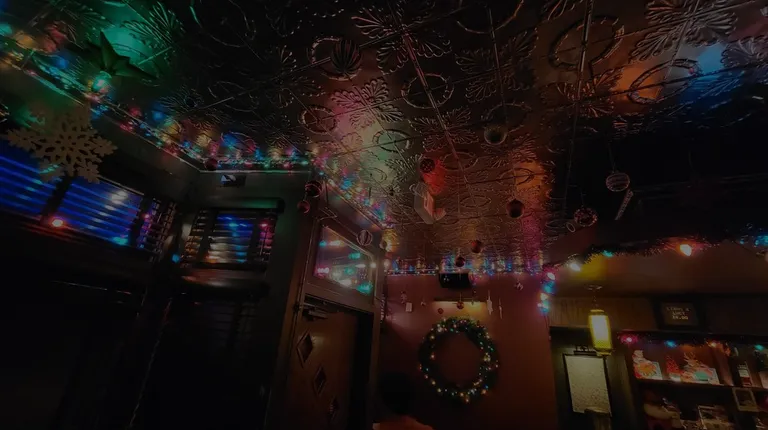 a crowded bar with disco lights