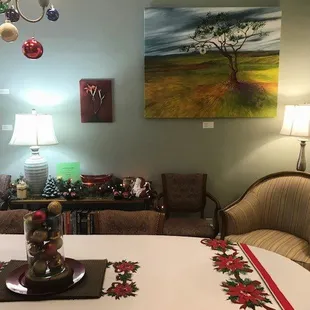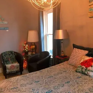 The perfect last night of our little honeymoon!! My wife and I enjoyed staying at this gorgeous B&B so much we are definitely coming back soon! The house is gorgeous with so much attention to tiniest detail like cotton balls and makeup remover in the bathroom to the holiday themed napkin holders. Mary Ellen and Andrew are such a wonderful couple. They made us feel at home from the moment we walked in.The breakfast that Andrew prepared exceeded our expectations of the B&B breakfast by far! French toast was an artistic masterpiece of culinary guru Andrew, only to be topped by an abundance of art surrounding eclectic breakfast setting. I would wholeheartedly recommend this place to all of our friends! 6 starts out of 5!