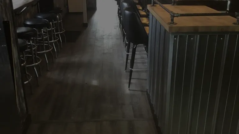 a bar with stools and tables