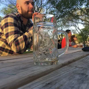 I'm not sure that I want to take the title of That Biergarten guy. I've been to every permanent BG so far. With exception to The first Sprecher mobile BG. This is a mobile beer vender trailer with a choice of Four of St. Francis brewery beers with food service in the building. They have Plenty of picnic tables and mugs of two sizes. Liter and Half liter deposit is $6. Cash only. They do have an ATM inside the building. At this time they want to use their own mugs. So save your stein for Estabrook, Landings, or any of the mobile Sprecher locations. I believe it is an internal limitation so they have and a dual control to cross check total head counts. And keep the pours standardized. And considering that they only have one porta potty and a men's room that serves two at a time. Tables are new so look out for splinters or use a tablecloth. Bring snacks and enjoy your local parks. Food: 3 on your own or warm brats dog and pretzels. 3Amb.: 4 live music. Serv.: 4Loc. : 5Val. : 4 prices are similar to Estabrook and Hoyt park. 63/2014