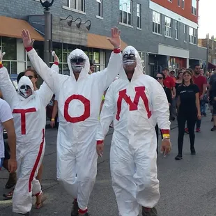 Won a ticket from good ole Yelp! First thing wife says "we aren't doing the tomato fight are we?" Well as a matter of fact, hell no we aren't. I'm a bit to old to get in a caged ring with a bunch of youngsters chucking rotten tomatoes at each other. It does make for a good watch though and that we did. First this 2017 11th Eastside Annual Tomato Romp couldn't have dreamt up better weather. It was sunny and crisp out and so it began, the jaunt around to hit up 8 different pubs and enjoy a 5 oz. sample at each location. That's 40 oz of the goods! If you didn't walk away full or buzzed... well that's your problem. As expected some bloodies weren't nearly as good a s others and thus why they call it a contest. Still trying to figure out who won the damn event. Voting was as easy as 1, 2, 3 so that was a plus. All the places to try the juice were centrally located except Buddha Lounge which was a little further walk away. No matter I crowned one of favorite local spots Vintage as the Bloody Mary Champ. We'll see if it holds true. After that Vitucci's, Hooligan's and Landmark Lanes all had tasty bloodies, in that order. Fun event, good weather and lot's of people roaming around MKE make for a great day!