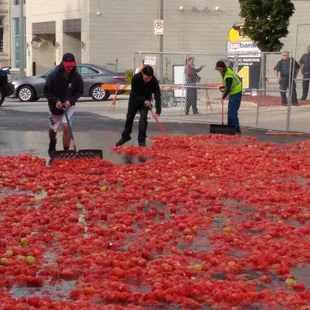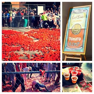 Oh it is about that time of year! Young and old get together to join forces and battle it out in the one and only tomato arena around! In this engagement individuals are divided into two separate teams and you enjoy the atmosphere leading up to the battle.As tradition it begins on a cool September afternoon and you can register online or in person and choose to opt for the Blood Mary Challenge or register for just the Romp. The Bloody Challenge entails a sampling of 5 oz. Bloody Marys for establishments in the area and all include beer chasers. Afterward you cast you vote for the best.A parade around the block proceeds the event and it concludes near the cage where there are thousands of pounds of tomatoes ready for action. The whole thing lasts only two minutes but be expect to be covered in tomato seeds, soaked to the bone, and sloshing around in tomato juice filled shoes in the end. No worries, you are given goggles for safety and will only sport a few bruises!Come join the fight, chicken out and be a spectator, or step up and go crazy, fill up on Bloody Marys and beer chasers, cast your vote, and don't be shy and put some heat on those tomatoes.See you in the pit.http://fox6now.com/2016/09/10/10th-annual-tomato-romp-day-full-of-eating-drinking-and-throwing-tomatoes/